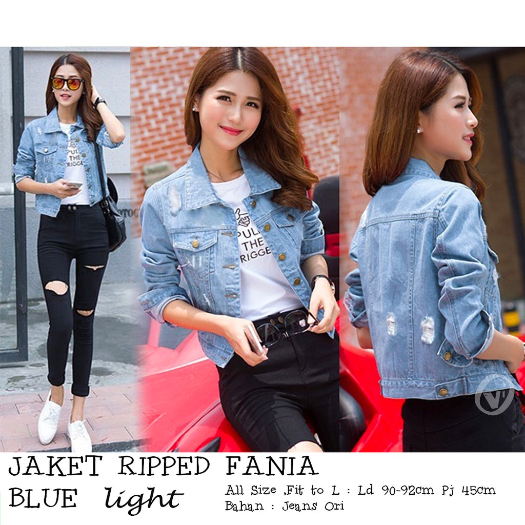 VSHOP - JAKET WANITA JEANS KEKINIAN VARIASI RIPPED FANIA