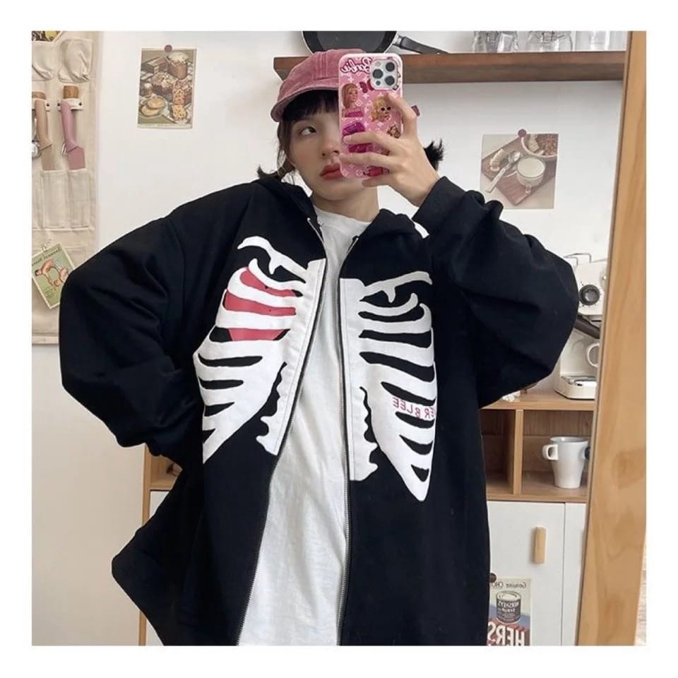 Alasan kenapa harus beli GRUNGE heart BONE / ZIPPER JAKET UNISEX GAMBAR TENGKORAK SKULL sekarang