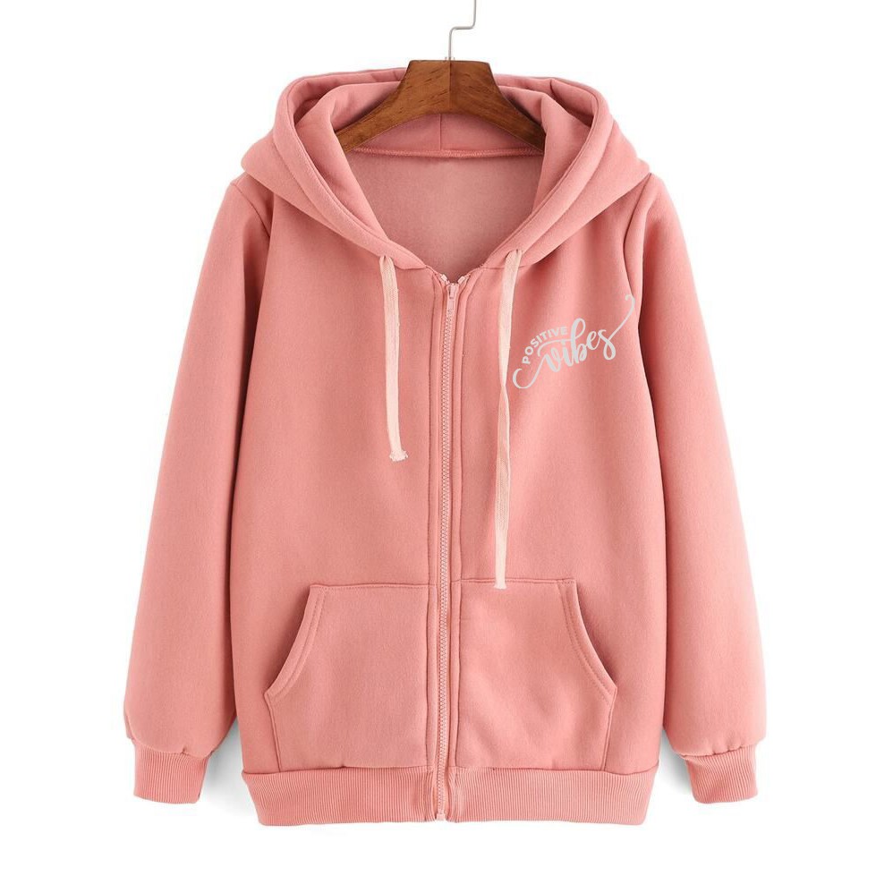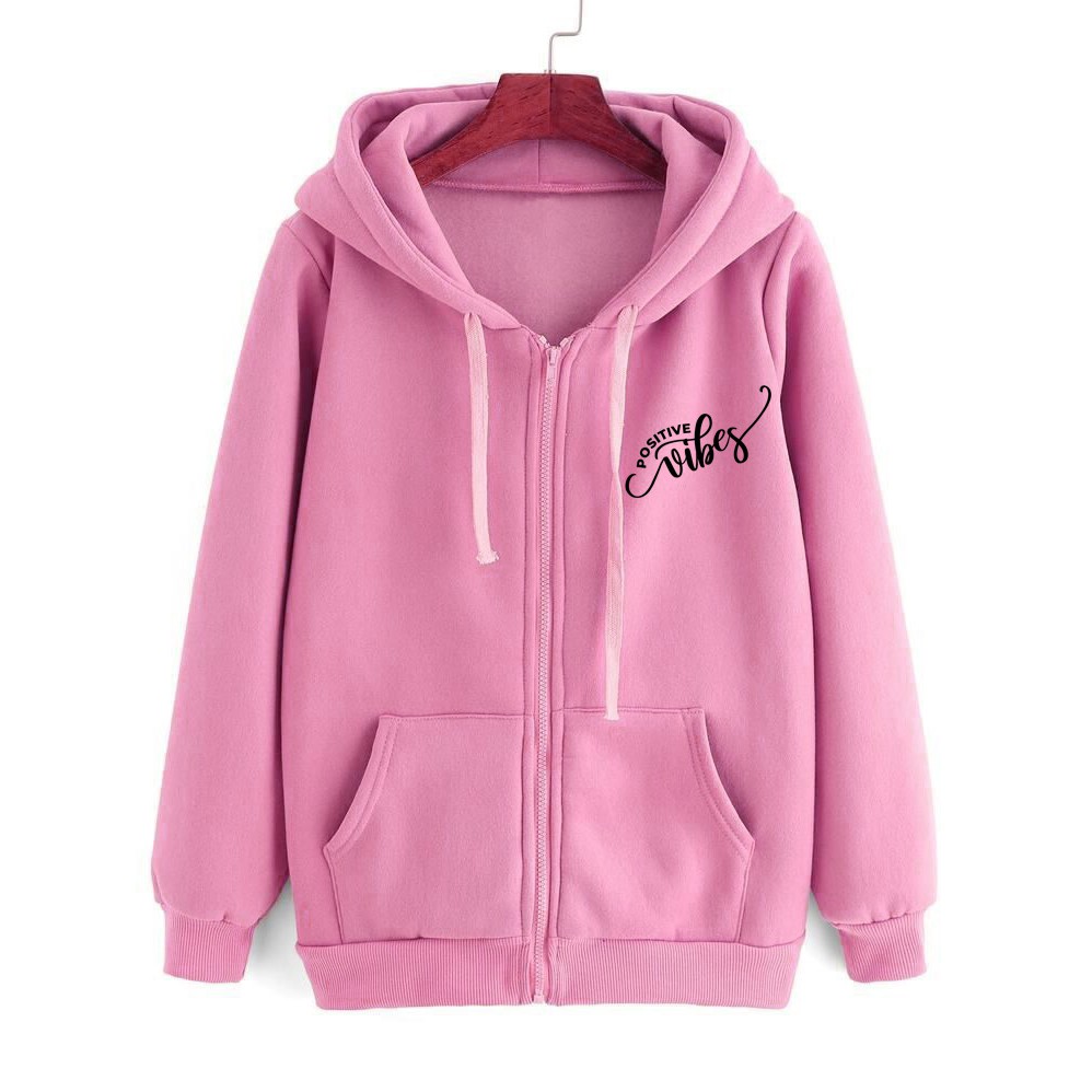 Harga Jaket Hoodie Atasan Lengan Panjang POSITIVE VIBES Babyterry